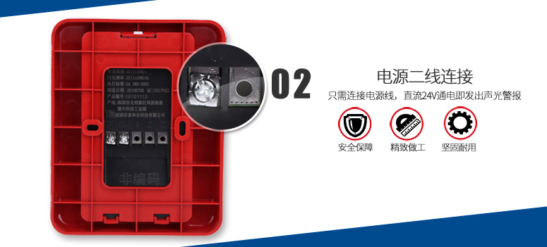 TX3302聲光警報(bào)器(以下簡稱聲光警報(bào)器),是一種安裝在現(xiàn)場的聲光報(bào)警設(shè)備。采用高亮度的LED光源,聲光警報(bào)器啟動(dòng)后發(fā)出強(qiáng)烈的聲光報(bào)警信號(hào),以達(dá)到提醒現(xiàn)場人員注意的目的。